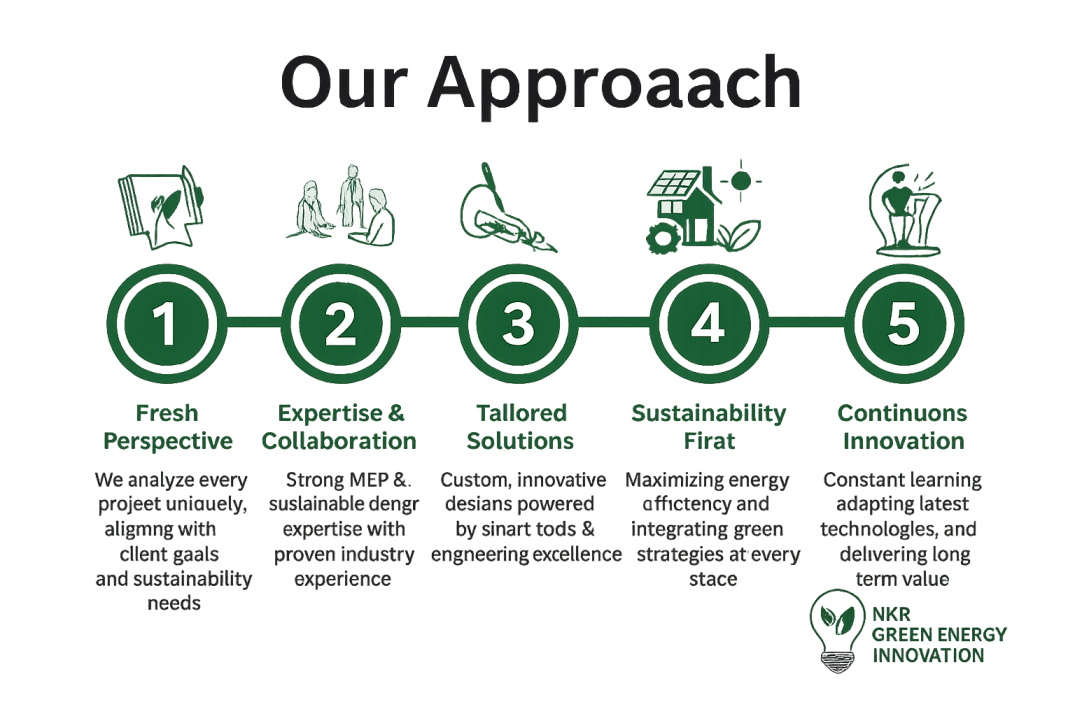 At KKR Green Energy Innovations, we believe in delivering solutions that go beyond consultancy — solutions that create lasting impact. With a strong foundation in MEP expertise, energy efficiency, and sustainability, we help businesses achieve smarter growth while reducing costs and building a greener tomorrow.